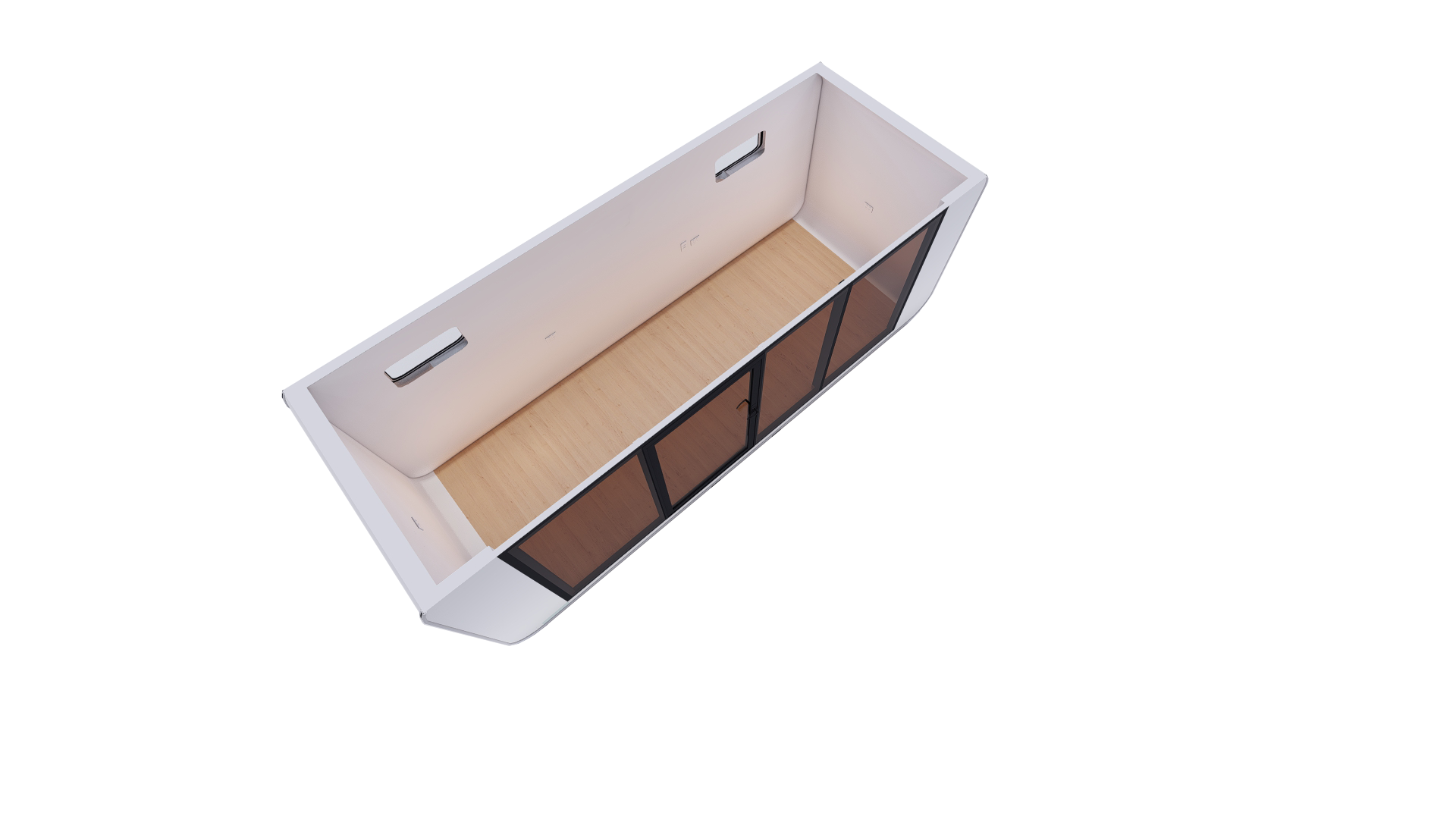 The interior of this portable pod boasts a versatile open-plan floor space. The design promotes a seamless and unobstructed layout, allowing occupants to utilise the space creatively and tailor it to their specific needs.