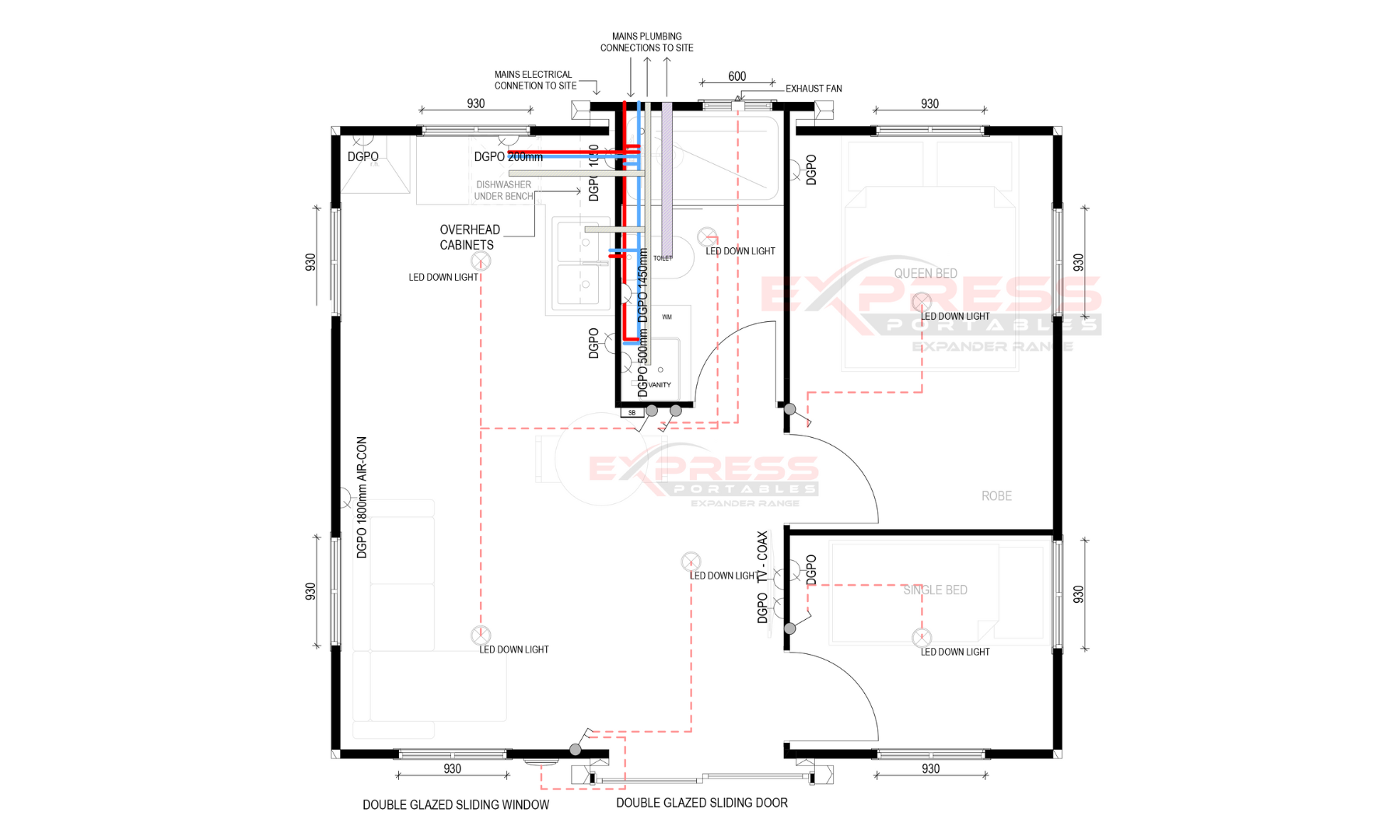 The building comes pre-plumbed with hot and cold water, vanity, and waste connections routed through the back of the building. You will require a qualified plumber to connect these services to the property.