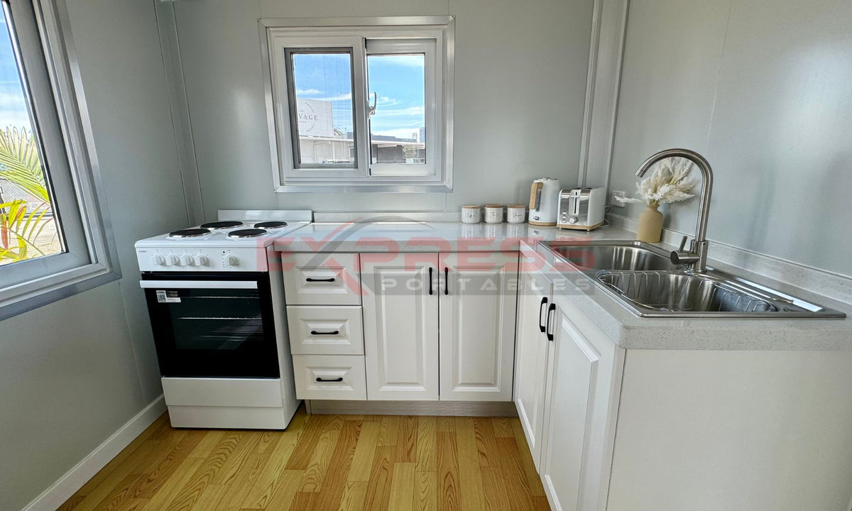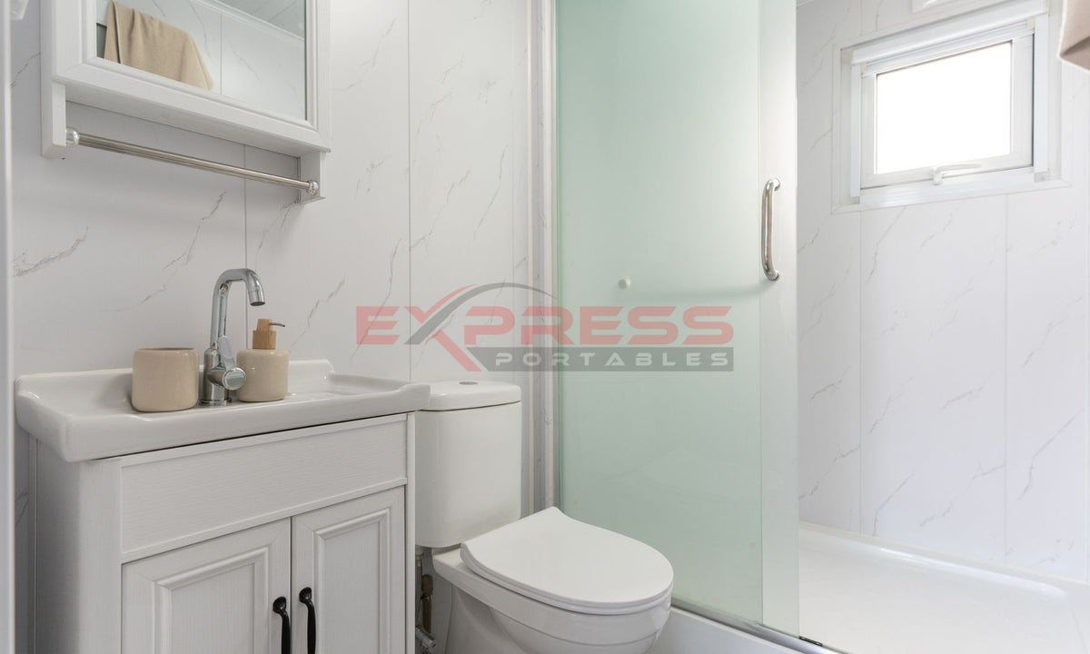 The building comes pre-plumbed with hot and cold water, vanity, and waste connections routed through the back of the building. You will require a qualified plumber to connect these services to the property.