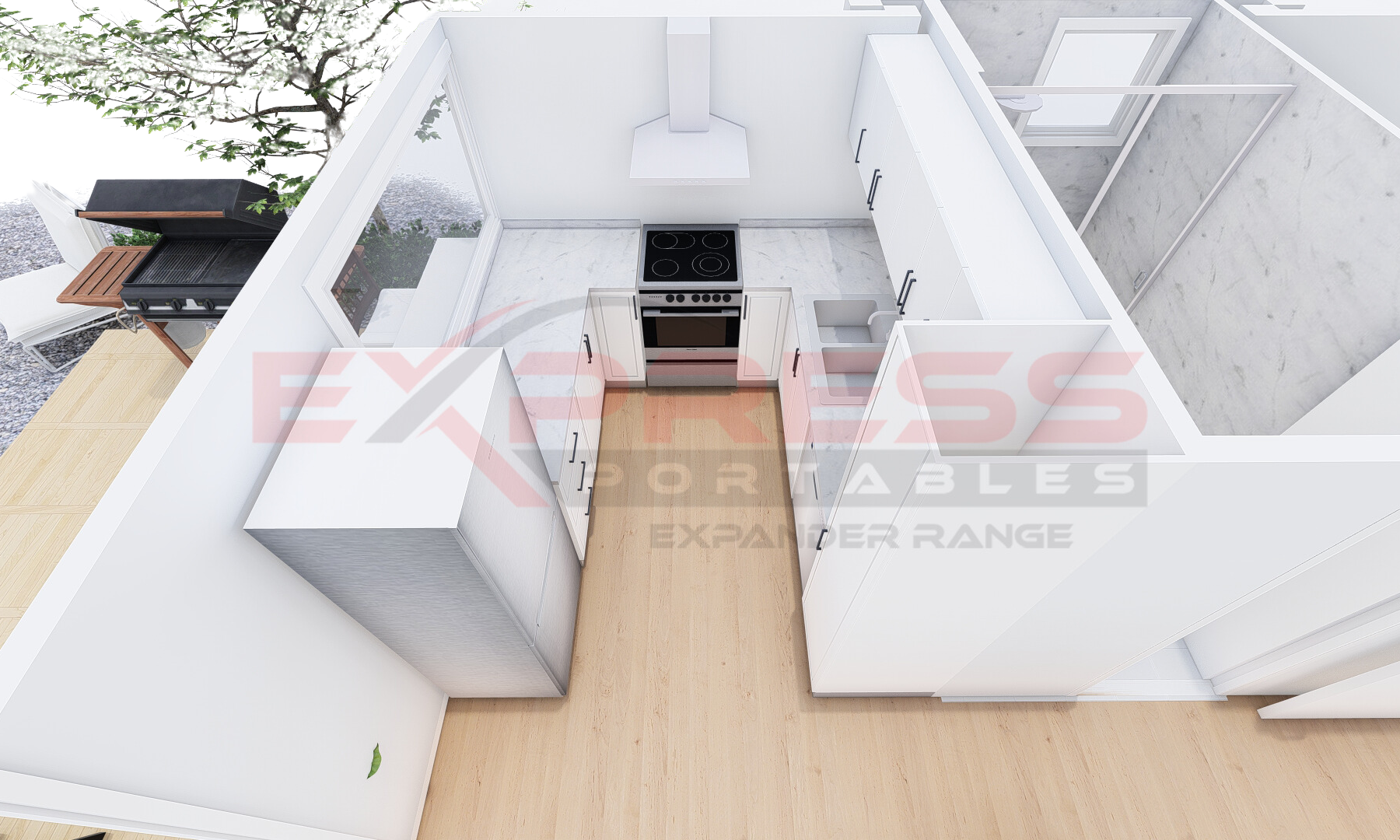 Featuring a unique U-shape design, offering a highly functional and efficient layout. This design maximizes counter space and storage, providing ample room for cooking and prep-work.