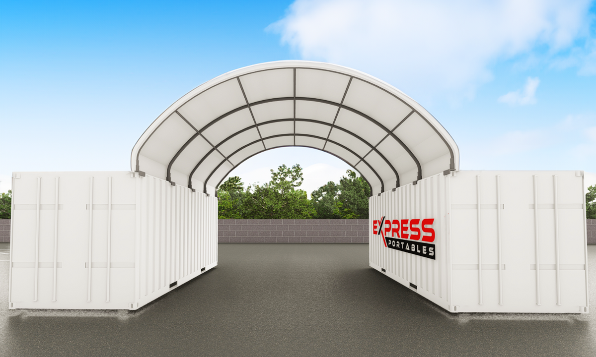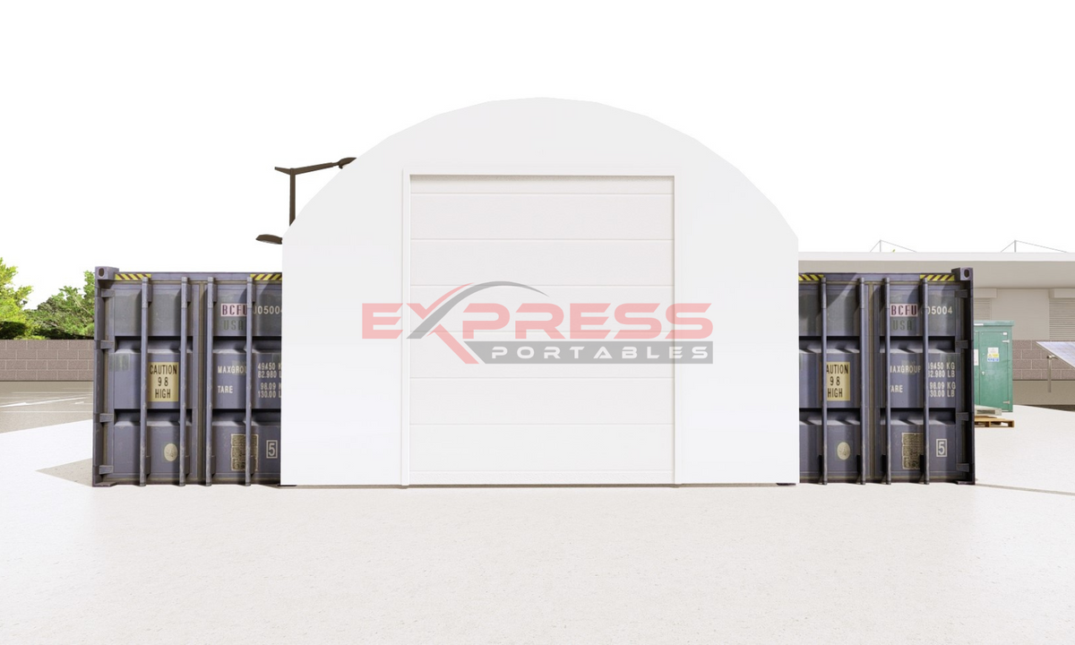 The 20ft x 20ft Container Dome is an extremely versatile option for those needing; workshops, weatherproof storage or a secure sheltered facility. The shelter is constructed from a steel frame with a white commercial grade PVC.