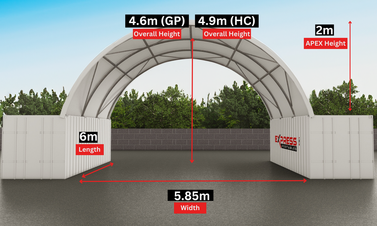 Download our Dimensions Guide for all the dimensions on our Container Domes & Shelters. Widths ranging from 20ft to 60ft.