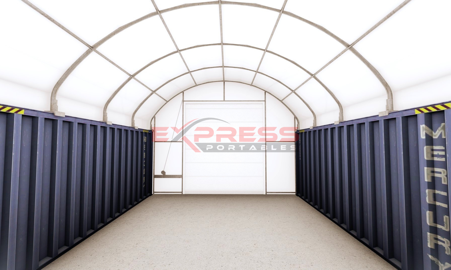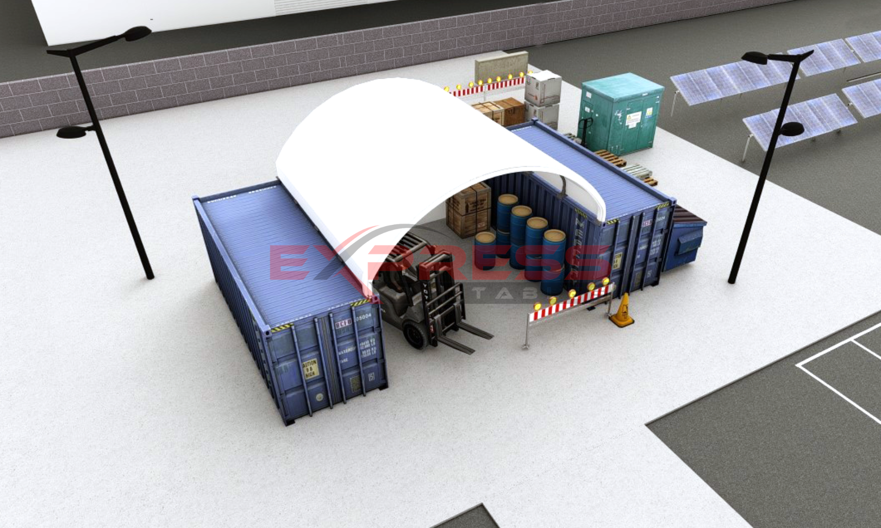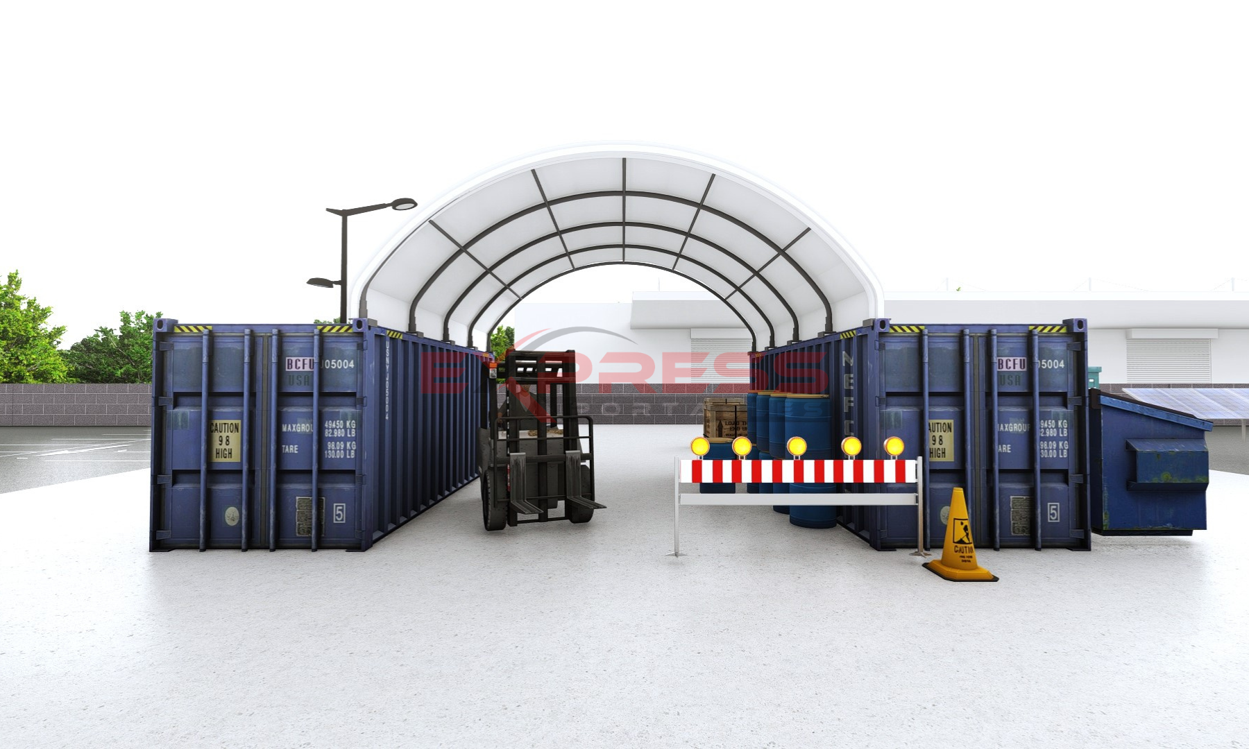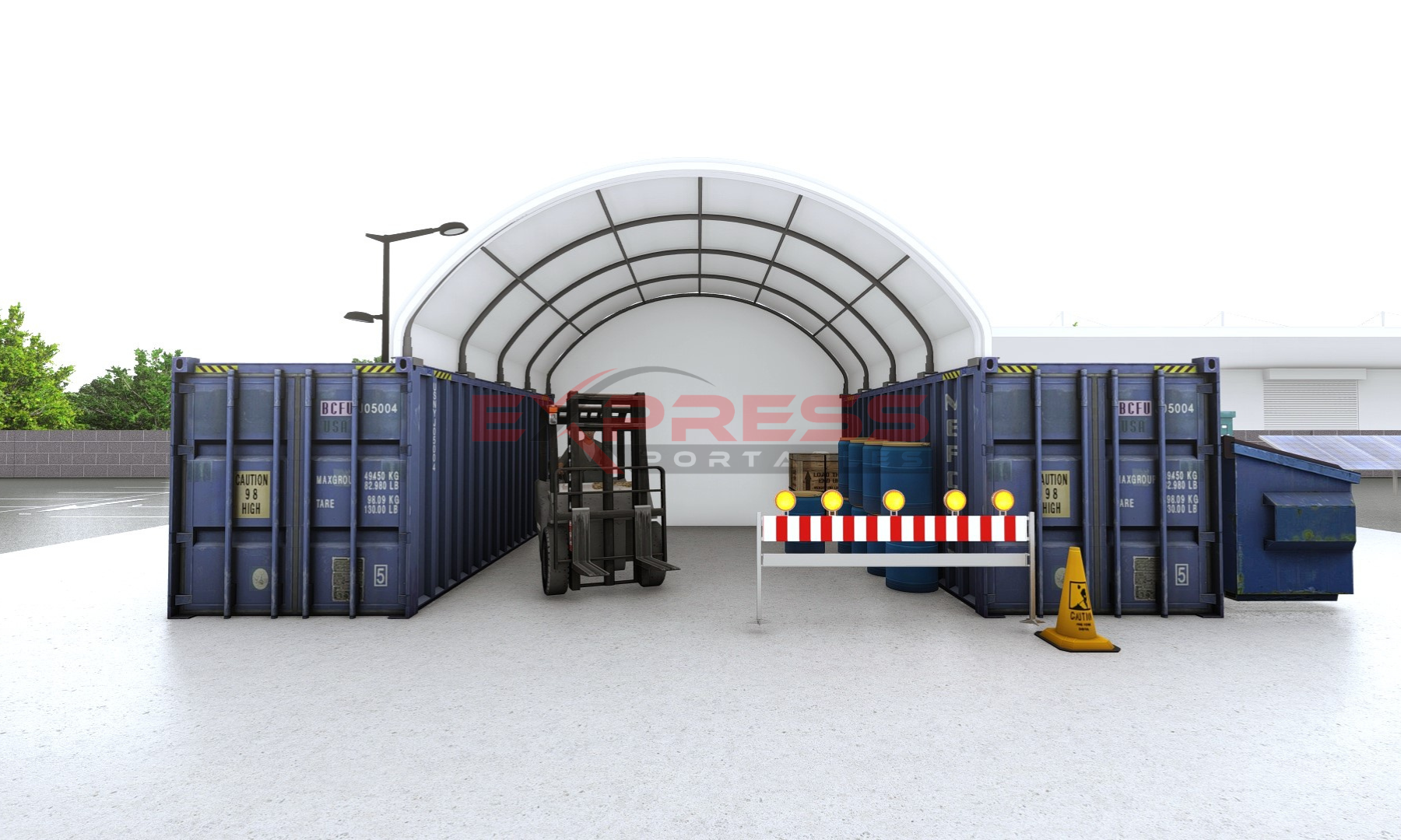 The 20ft x 20ft Container Dome is an extremely versatile option for those needing; workshops, weatherproof storage or a secure sheltered facility. The shelter is constructed from a steel frame with a white commercial grade PVC.