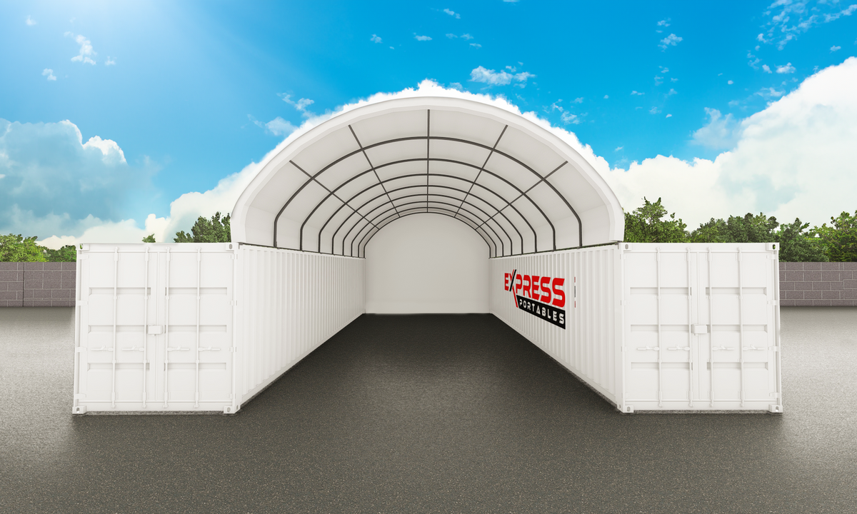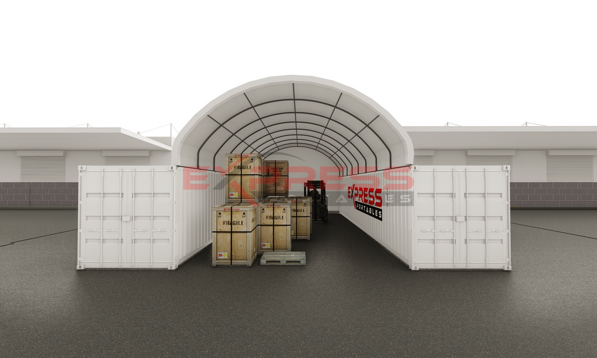 The 20ft x 40ft Container Dome is an extremely versatile option for those needing; workshops, weatherproof storage or a secure sheltered facility. The shelter is constructed from a steel frame with a white commercial grade PVC.