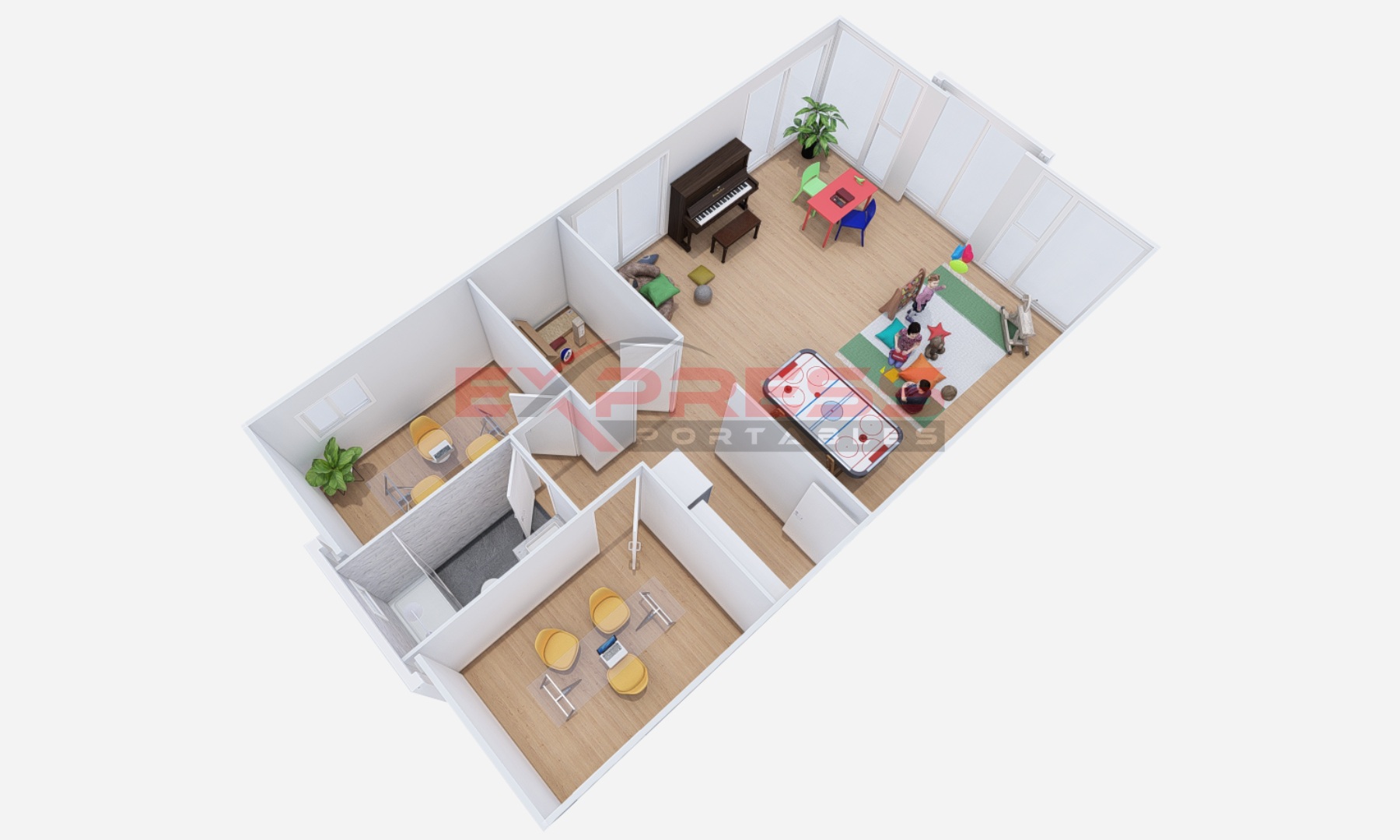 The truck carefully slide unloads the building to the rear of the truck. Manoeuvrability and access around the site is essential, the truck requires 10-15m in a straight line to slide unload and drive away
