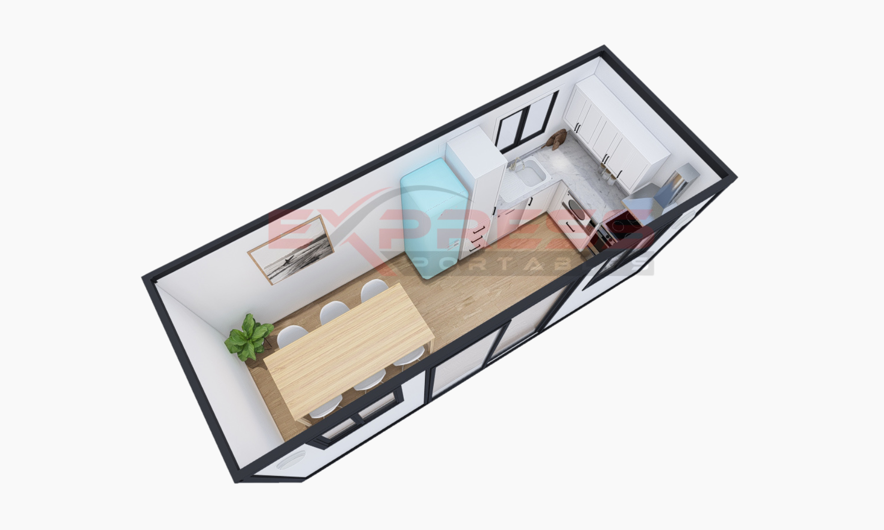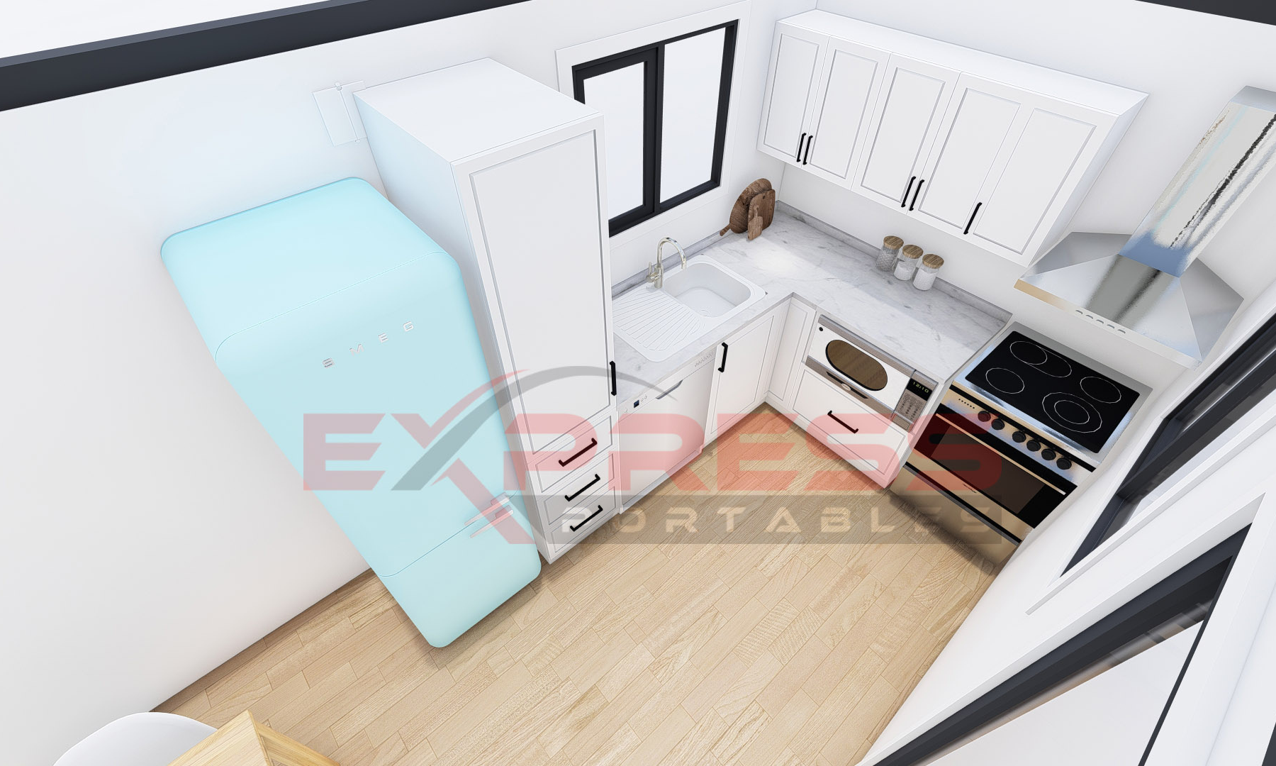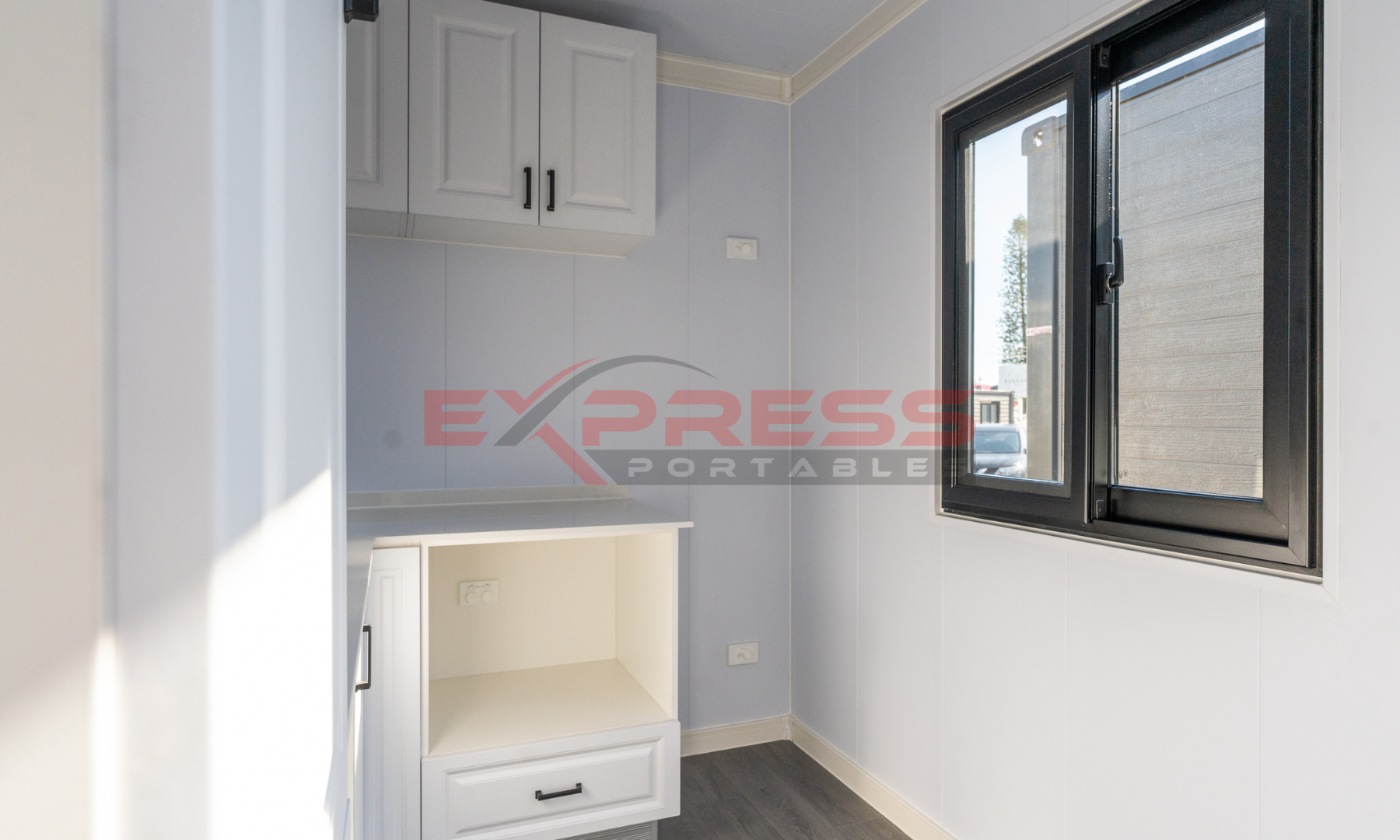 The 2.4m internal ceiling height is thoughtfully designed to provide optimal space, enhancing the sense of openness and comfort within the cabin. This taller ceiling height creates a comfortable living experience while adding a modern and expansive feel to the cabin’s design.