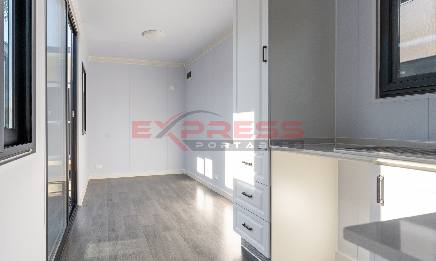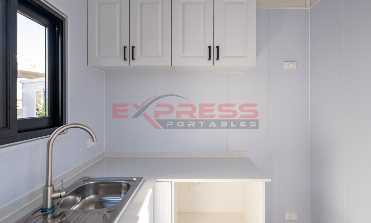 The building is delivered pre-plumbed with the kitchen waste and inlets plumbed through the back of the building. You will require a qualified plumber to connect the building to existing services.