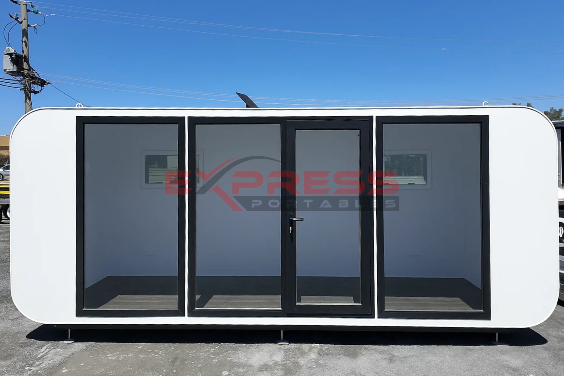 The interior of this portable pod boasts a versatile open-plan floor space. The design promotes a seamless and unobstructed layout, allowing occupants to utilise the space creatively and tailor it to their specific needs.