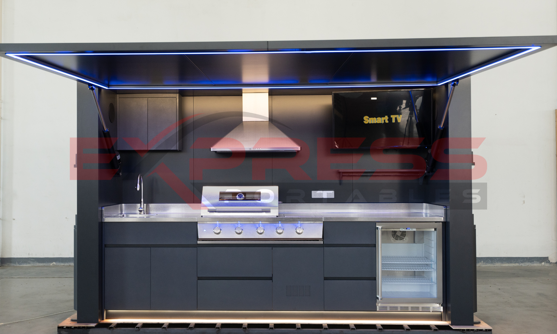 At the touch of a button, the canopy smoothly opens or closes, transforming your pod from a streamlined, space-saving unit into a fully equipped outdoor kitchen. The electric actuator system ensures effortless operation, while the robust stainless steel build guarantees durability in all weather conditions. Perfect for smaller yards or entertainers who value flexibility, this innovative design combines convenience, style, and practicality in one compact package.