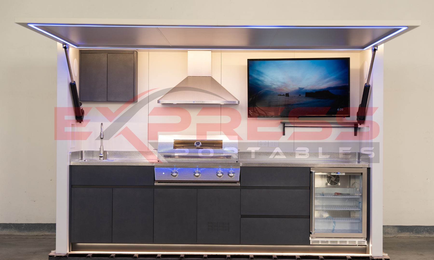 At the touch of a button, the canopy smoothly opens or closes, transforming your pod from a streamlined, space-saving unit into a fully equipped outdoor kitchen. The electric actuator system ensures effortless operation, while the robust stainless steel build guarantees durability in all weather conditions. Perfect for smaller yards or entertainers who value flexibility, this innovative design combines convenience, style, and practicality in one compact package.