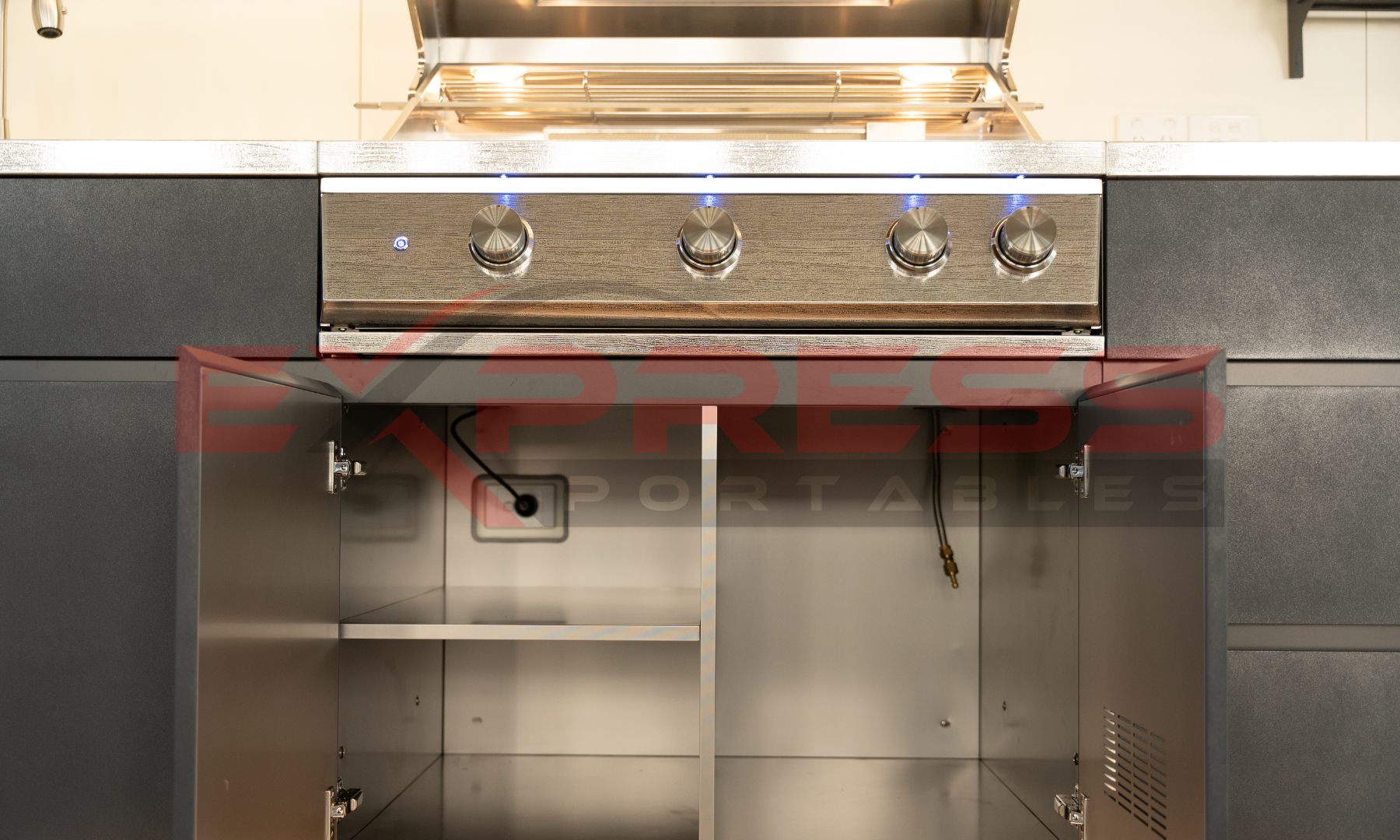 Elevate your outdoor entertaining with the BBQ Social’s premium RGB lighting, built seamlessly into the opening rangehood. This 24V waterproof LED system projects outward, casting a striking wash of colour that instantly transforms your BBQ space into the ultimate party setting. More than just stylish, the outward projection also improves visibility around your BBQ area, ensuring your cooking station looks as good as it performs.