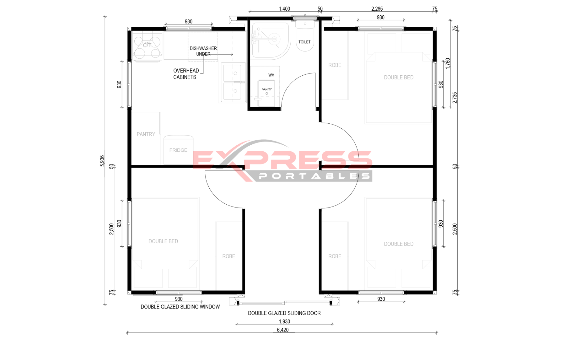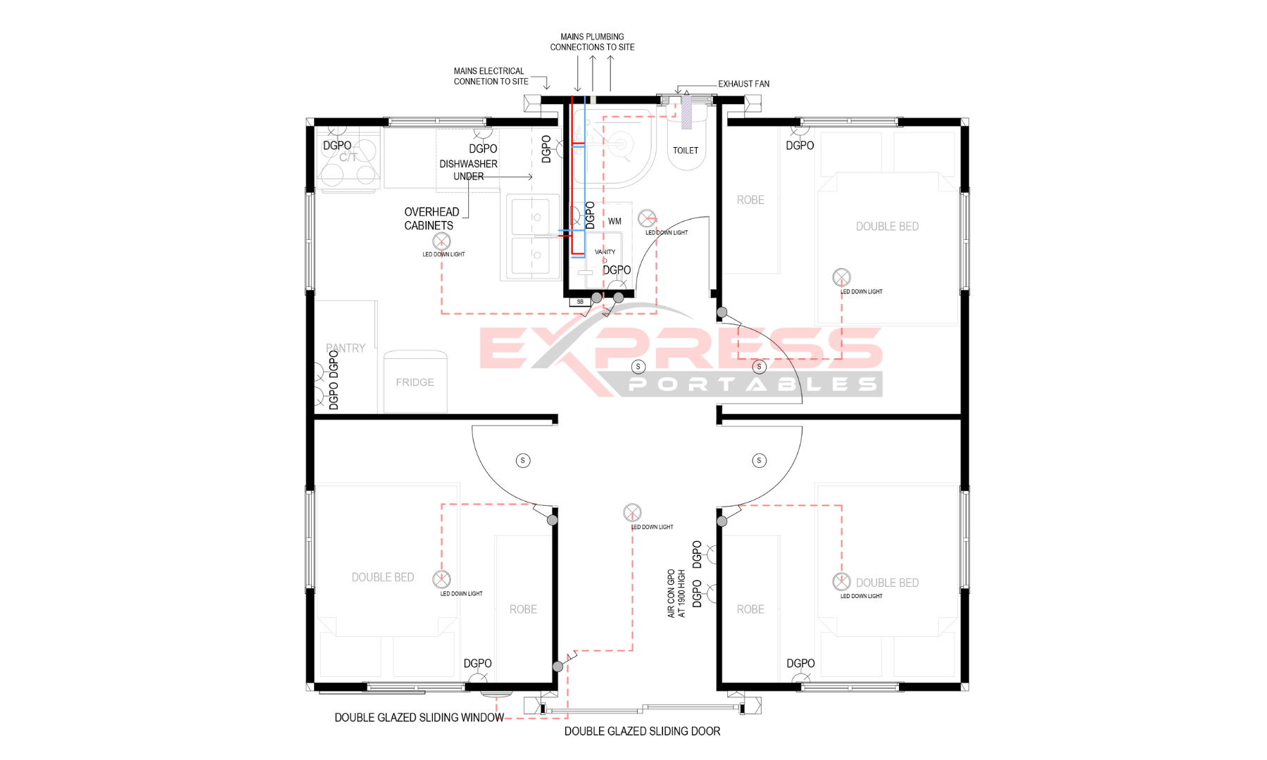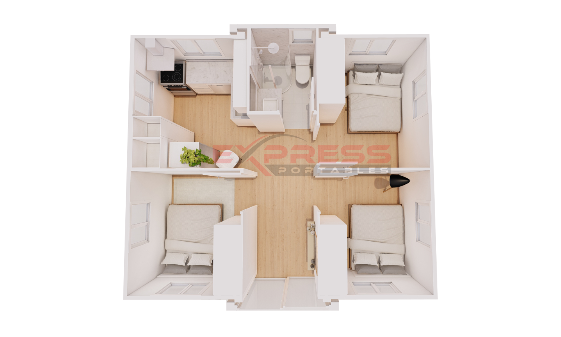 The bathroom is pre-plumbed; however, additional plumbing might be necessary depending on the building. The building must be elevated at least 500mm off the ground.