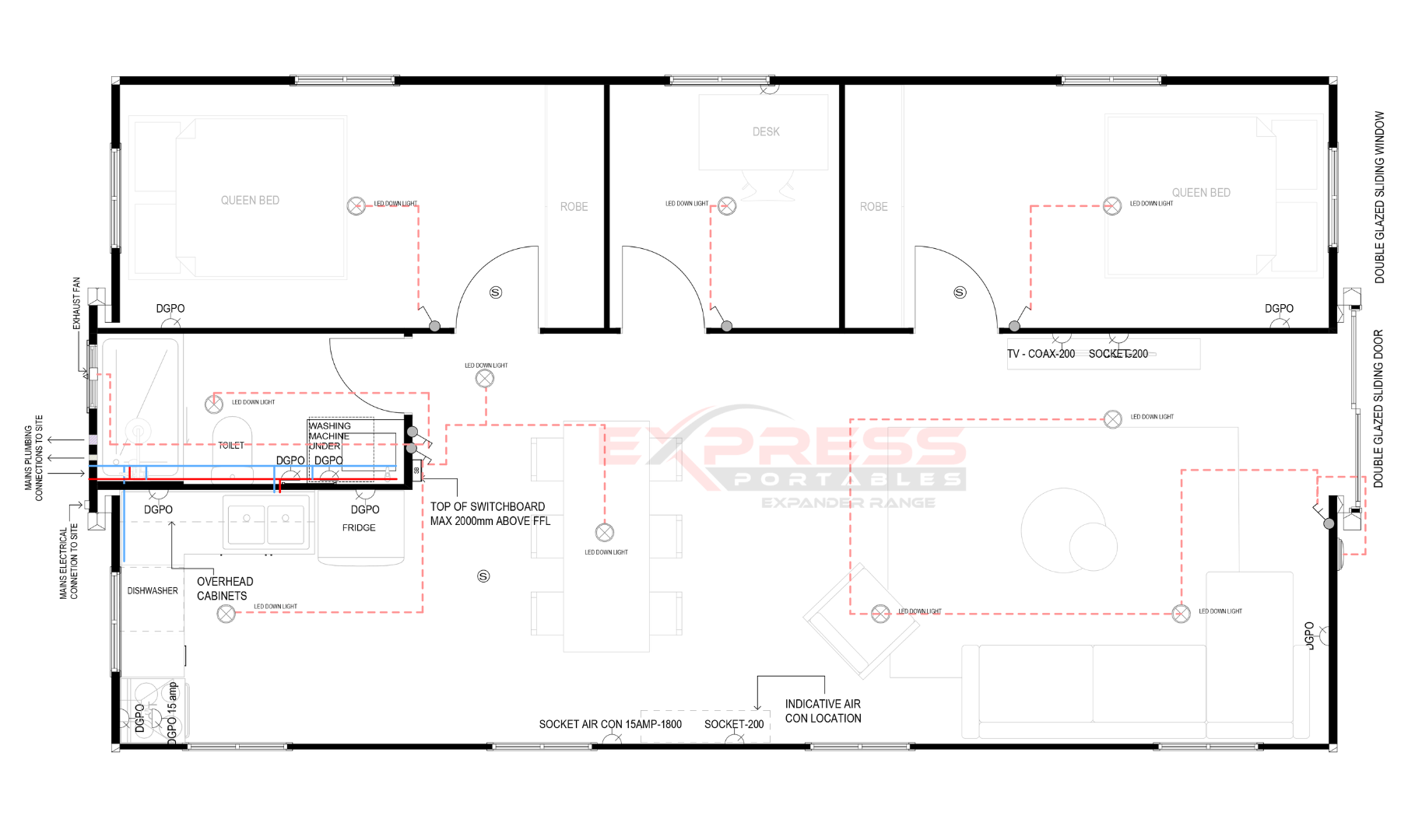 Power All electrical points are prewired inside walls. Fit off of electrical points required after opening and installing, Aerial point provided for TV. Mains supply located at rear of expander